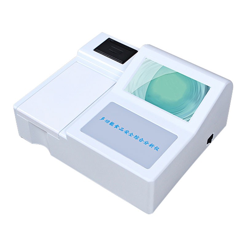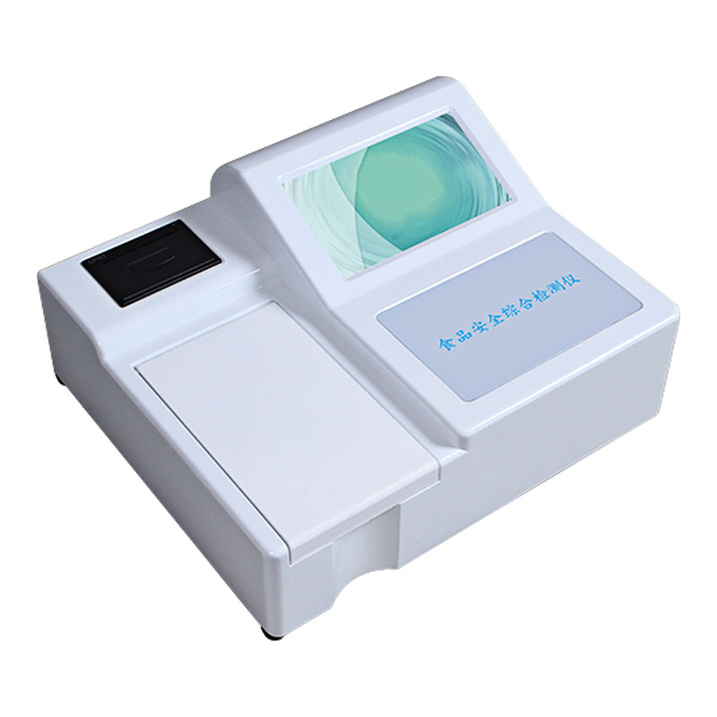 有機磷及氨基甲酸酯類農藥殘留、甲醛、吊白塊、亞硝酸鹽、硝酸鹽、雙氧水、二氧化硫、甲醇、氫氧化鈉、硼砂、食用油酸價、食用油過氧化值、食醋總酸、醬油氨基酸態氮、揮發性鹽基氮、組胺、細菌毒素、面粉中鋁、面粉中溴酸鉀、面粉中過氧化苯酰、亞鐵氰化鉀(食鹽)、豆芽中尿素含量、淀粉純度、硫化鈉、甜蜜素、奶中硫氰酸鈉、重金屬鉛、芝麻油純度、茶多酚、山梨酸鉀、糖精鈉、堿性橙、蜂蜜中羥甲基糠醛、草酸、苯甲酸鈉、丙二醛、奶中蛋白含量、食醋總酸、木耳硫酸鎂等,(任意組合選著項目及通道)。