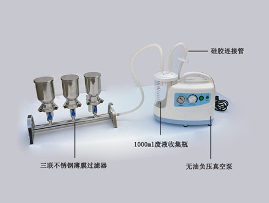 7、采用無油潤滑活塞泵,無油霧污染環境;免維護保養,抽氣速率高,極限負壓大。