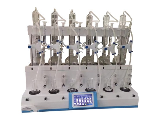二氧化硫殘留量測定儀整合加熱、蒸餾、冷卻循環、氮吹、磁力攪拌、接收及滴定裝置等功能為一體。單次可處理1-6位樣品,提高實驗效率。